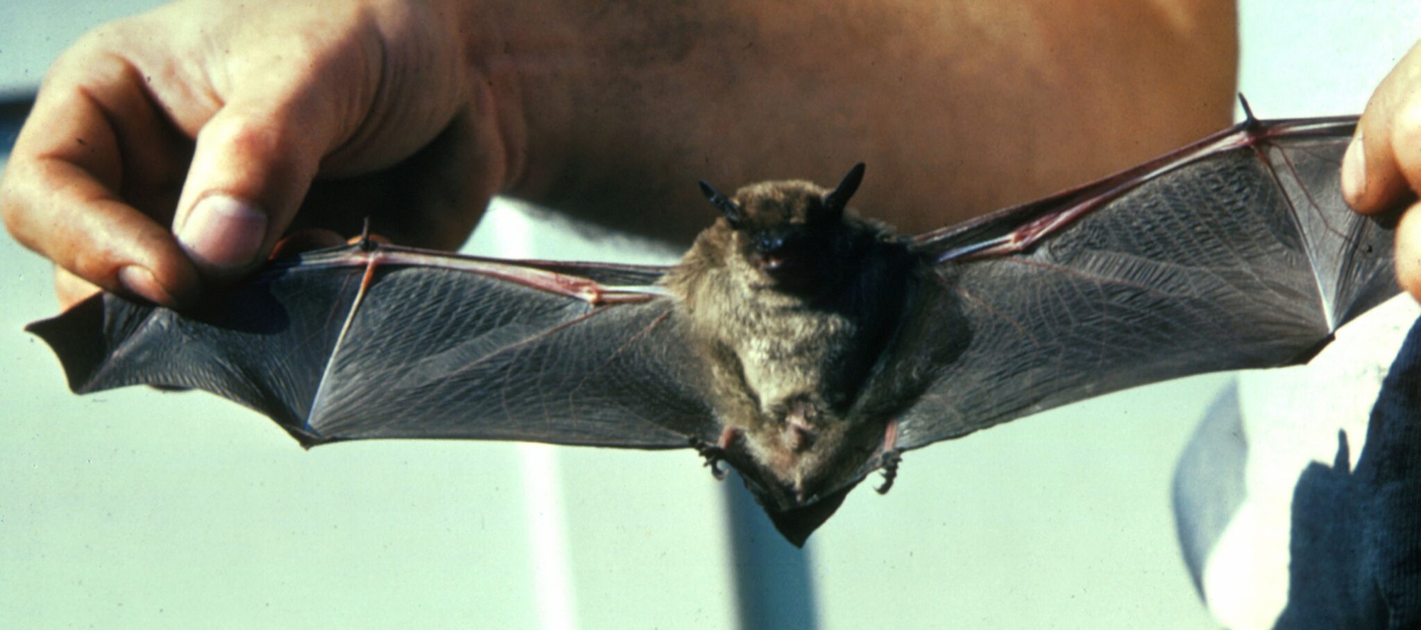 Un esemplare di vespertilio bruno (Myotis lucifugus)