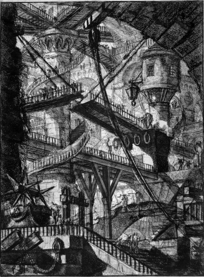 Il protagonista, Piranesi, non è quel Giovani Battista Piranesi, importante artista italiano del ‘700, famoso per le vedute di Roma e per la serie delle Carceri, quest’ultime delle invenzioni di fantasia dalla qualità onirica e misteriosa, che rappresentano delle segrete percorse da intrichi di scale e passaggi, fonte di ispirazione per i disegni impossibili dell’artista olandese Escher.