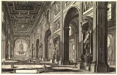 La vista dell’interno della Basilica di San Giovanni in Laterano può aiutare ad immaginarsi gli ambienti descritti dalla Clarke, in particolare le dimensioni gigantesche delle sale. Guardate le figure umane rapportate alle statue e all’ampiezza e altezza della sala.